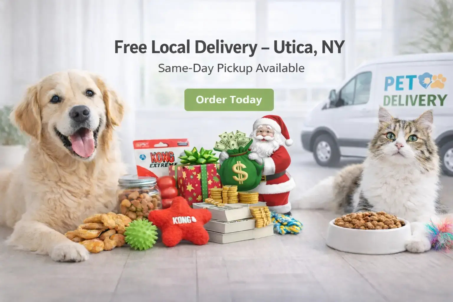 Did you recently get a new pet and now you need supplies and products…We have everything from pads for dogs to DNA test for dogs. Need toys we have them as well. From Kong dog toys, squeak toys. Looking for treats and chews we have those as well.. nylabone, bully sticks, and a wide variety of dog treats. Does your dog like to dress up well we have clothes for your dog. If there is something specific you are looking for and we do not have if let us know and we will order it for you. You can shop online- and stop in at our pick up location at 1036 Whitesboro St in Utica, NY. We also offer free delivery locally.